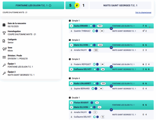 Sacha, pour son premier match par équipe avec Fontaine, a su rester concentré jusqu’au bout sans rien lâcher. Une très bonne recrue !