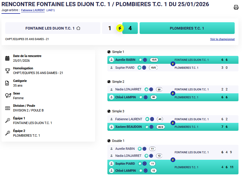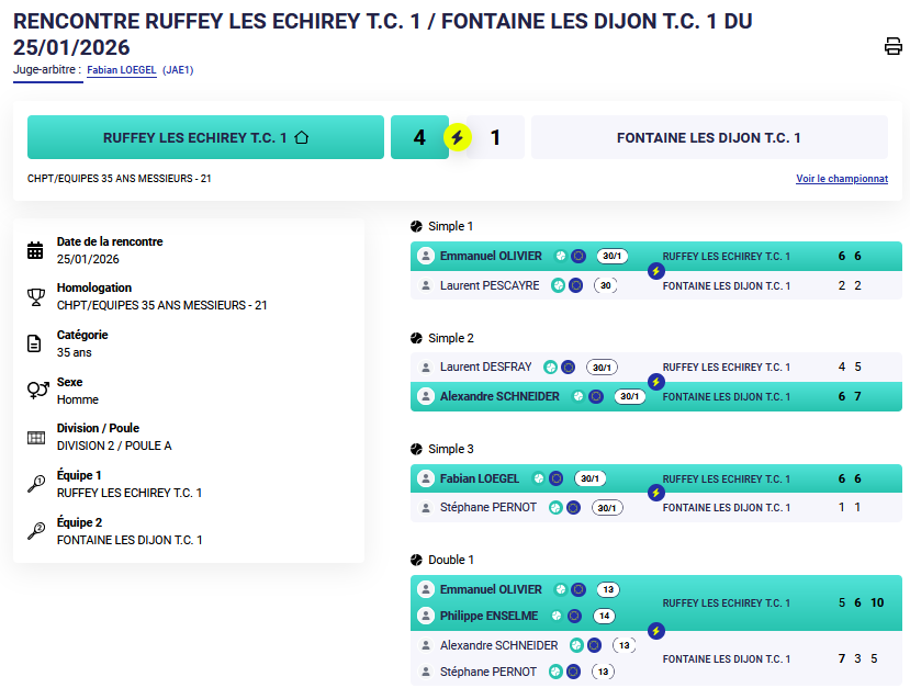 Petite contre perf pour l’équipe à Ruffey où cette fois le double n’a pas tourné en notre faveur.