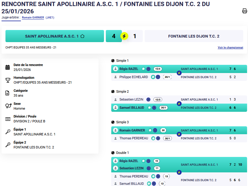 Compte-rendu circonstancié de la rencontre entre l’équipe 2 du FDTC et Saint-Apollinaire ASC 1, le samedi 24 janvier, comptant pour la 4ème journée de championnat hiver + de 35 ans hommes.