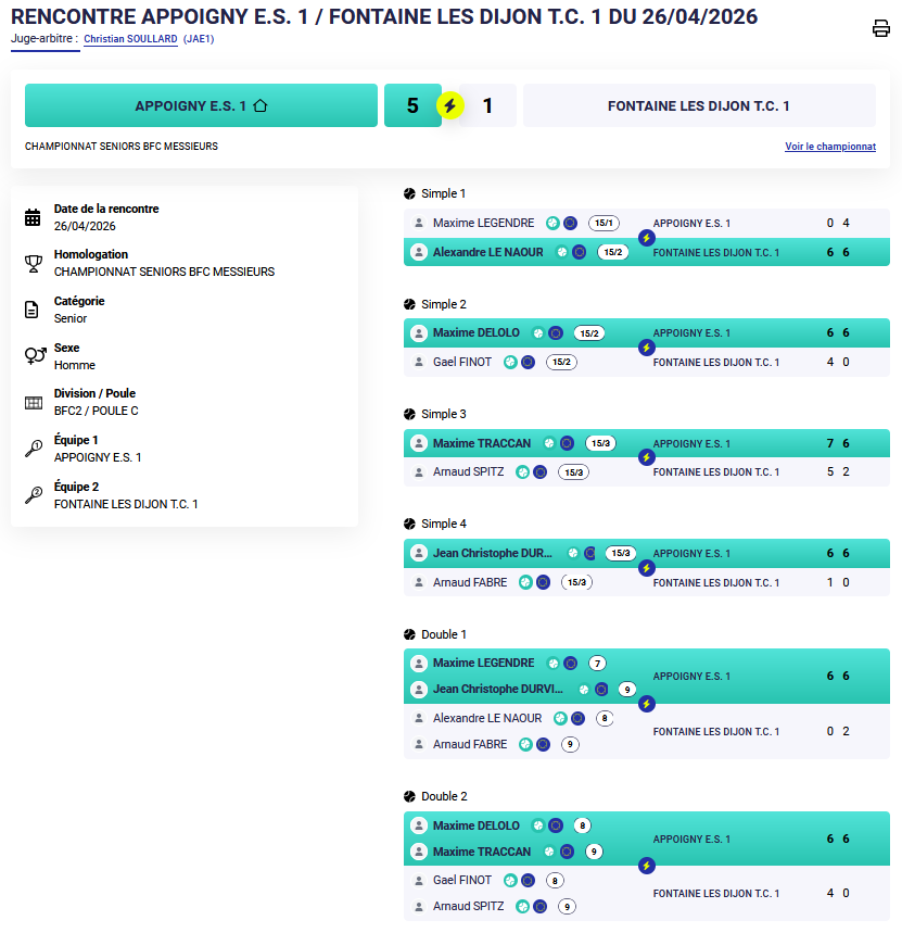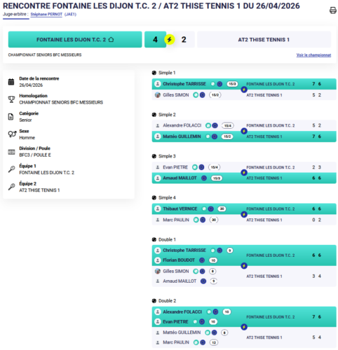 Malgré un résultat frustrant, l’équipe a montré de belles choses, notamment avec la victoire d’Alexandre en simple et plusieurs matchs où le score ne reflète pas toujours l’intensité des échanges.